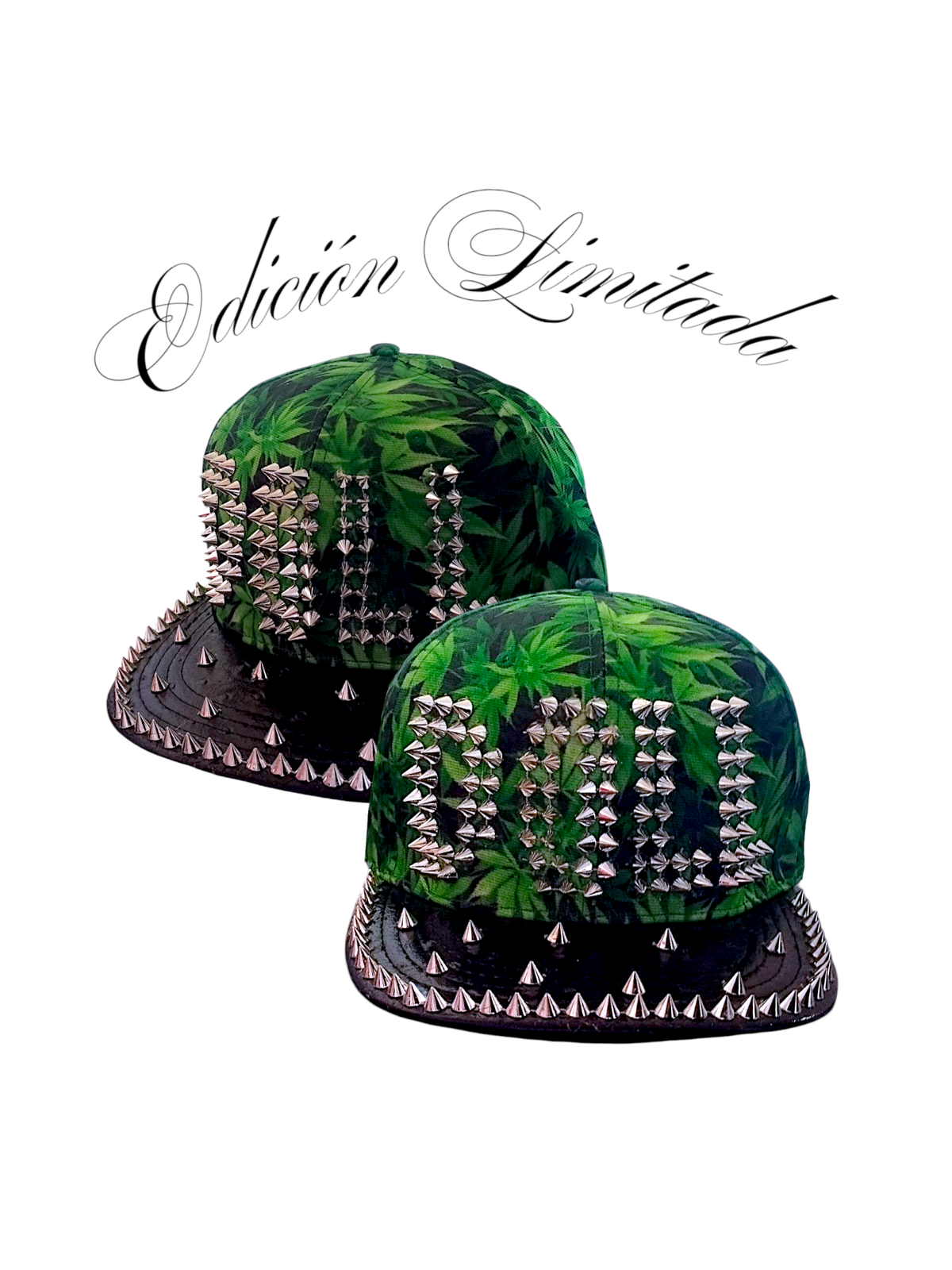 Gorra de vicera plana (snapback) con estampa de chalas y tachas